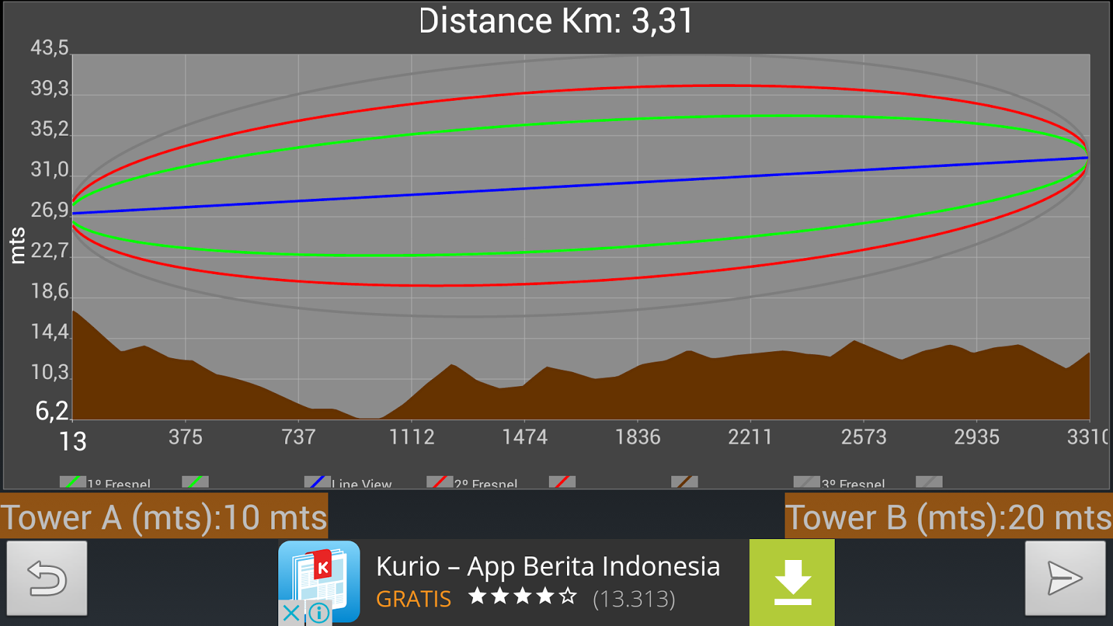 Yang terpenting adalah FRESNEL ZONE, dari beberapa aplikasi ternyata hitungan fresnel zone tidak boleh dimakan mentah mentah, biasanya harus ada hitungan tambahan lagi dari titik pas daratan fresnel zone nya, jikalau du persawitan, ambil nilai tertinggi pohon sawit, mungkin sekitar 20m, jadi harus ada tambahan 20m lagi dari titik lengkung signal dan daratan nya, waduh bingung gimana upload gambar nya hahaha, ntar de sambung lagi, maklum pake hape :). Berikut penampakan software nya